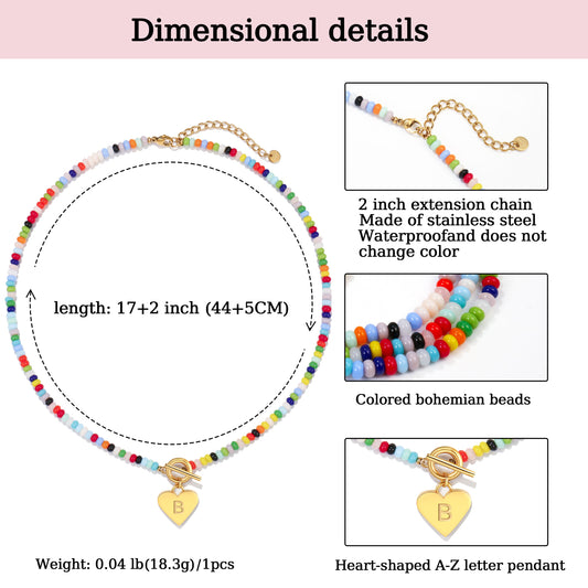 Beaded Heart Initial Pendant Necklace