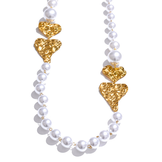 Chunky Pearl & Gold Heart Statement Necklace