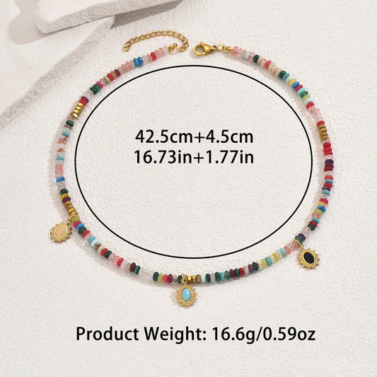 Colorful Enamel Medallion Necklace & Hoop Earrings Set