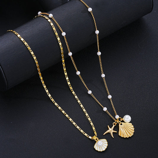 Layered Pearl Seashell Charm Necklace