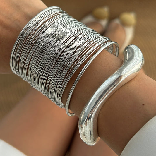 Multilayer Silver Hollow Knot Bangle Stack