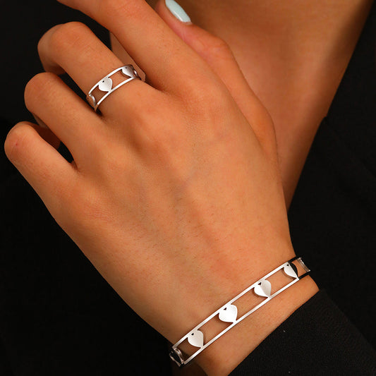 2pc Gold Heart Cutout Bracelet & Ring Set