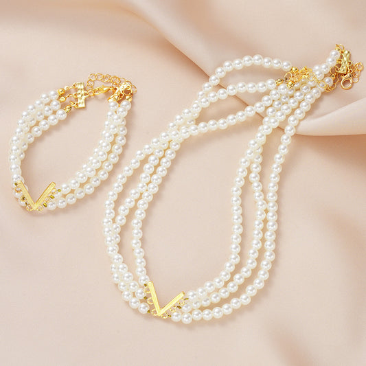 2pc Pearl Butterfly Bracelet & Necklace Set