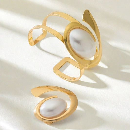 SAVE $262pc Matte Geometric Cuff & Ring Set