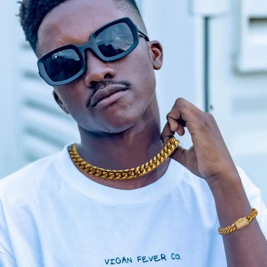 2pc Gold Cuban Chain Necklace & Bracelet Set
