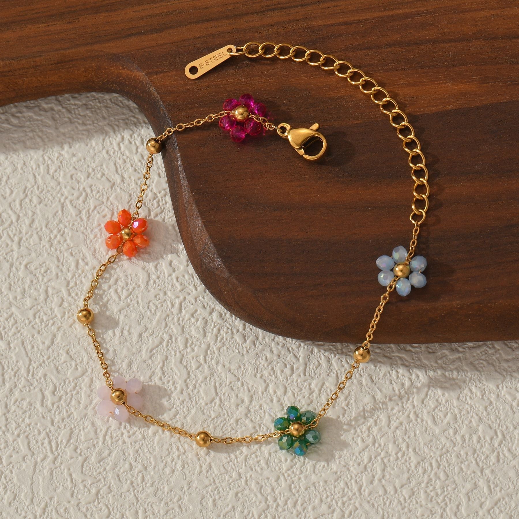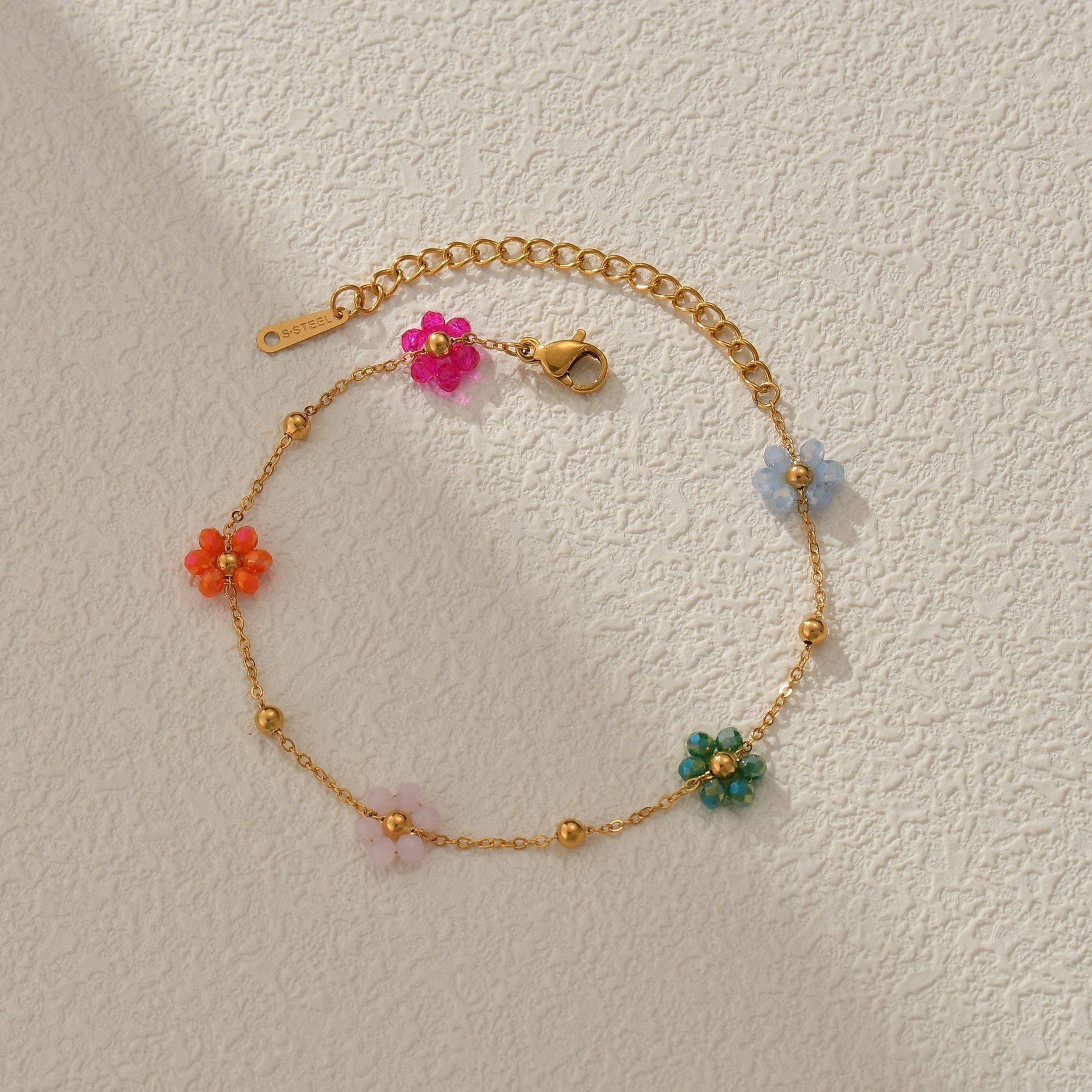 Colorful Beaded Flower Chain Bracelet